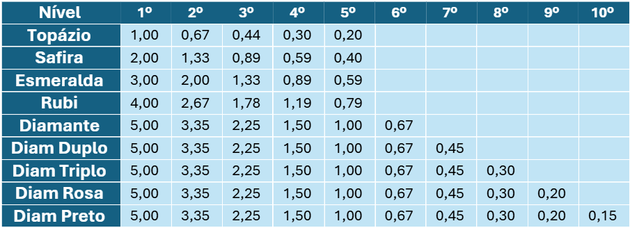 Assim como nos outros pilares, seu Nível de Qualificação é a chave que determina o quão fundo você pode "enxergar" e ganhar dentro da sua rede. Quanto mais alto seu nível, mais níveis de profundidade você desbloqueia, aumentando exponencialmente seu potencial de ganho, conforme sua Qualificação: