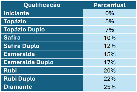 ✅ Você Sobe de Nível: Esse volume acumulado define o seu Nível de Qualificação (Topázio, Safira, Esmeralda, Rubi e Diamante). Quanto mais você consome, mais alto é o seu nível.