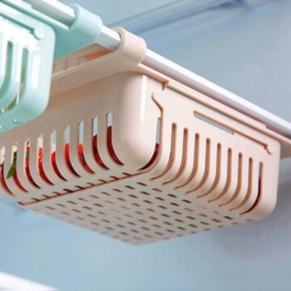 O cesto organizador conta com duas partes encaixáveis na grade da geladeira, substituindo um espaço vazio da geladeira em um lugar onde pode ser colocado mais alimentos!