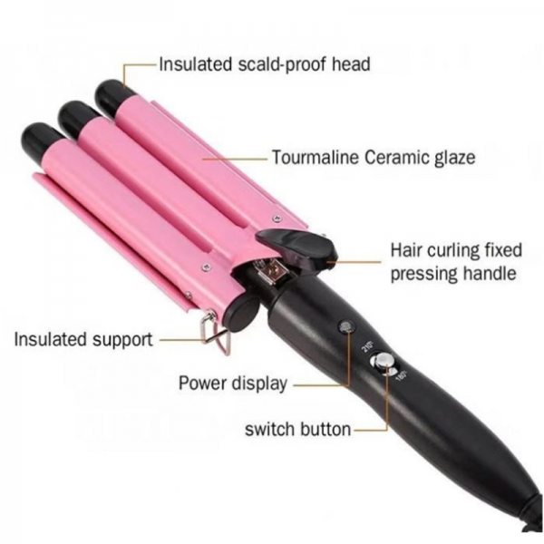 Basta posicionar o cabelo nos três barris do modelador, aguardar de 5 a 20 segundos e você obterá ondas grandes, naturais e perfeitas.
