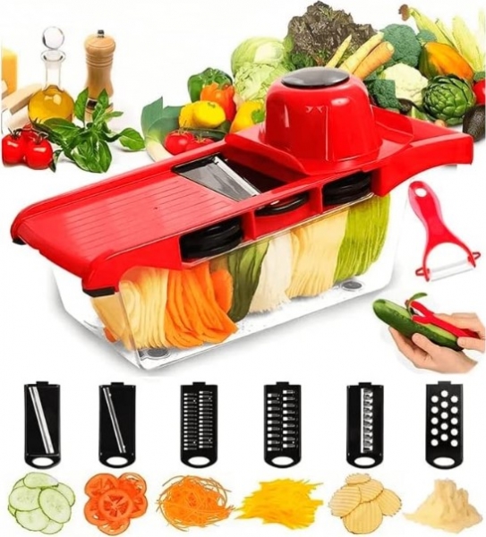 Prepare refeições deliciosas em minutos com o nosso cortador de verduras multifuncional com lâminas afiadas de aço inoxidável e vários acessórios, este cortador é perfeito para fatiar, picar, cortar em cubos e muito mais.