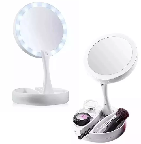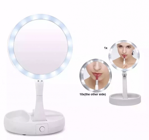 My Foldaway Mirror é um espelho de vaidade iluminado e de dois lados.