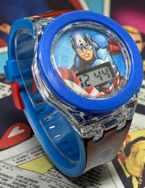 Possui display digital iluminado (LED) para facilitar a visualização das horas mesmo em ambientes com pouca luz, pulseira confortável e ajustável, e tema / personagem divertido como super-herói, heróis de desenho, carrinhos, animais ou outros personagens infantis.