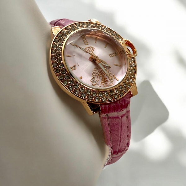 O Relógio DHP com pulseira de couro e caixa acrílica apresenta um design clean e sofisticado, com mostrador redondo e pulseira de couro ajustável, proporcionando conforto e leveza ao usuário.