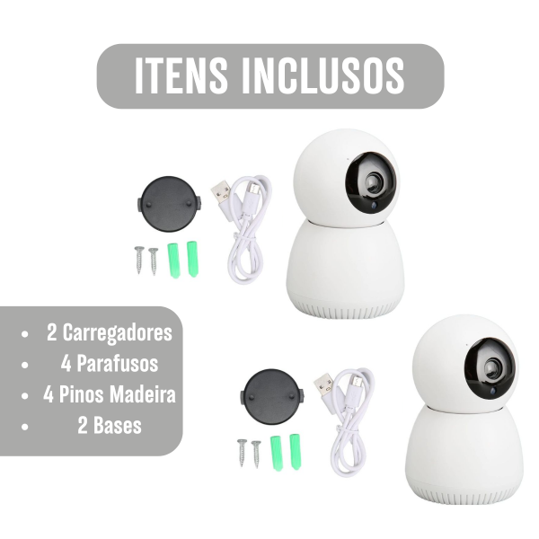 2 Câmeras de Segurança com Suporte p/ Parede ou Mesa Wi-Fi 360° Visão Noturna